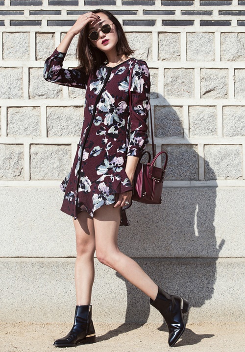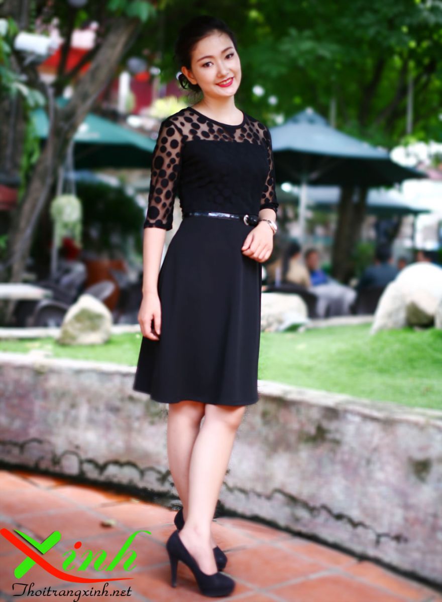 Họa tiết nhỏ nhã nhặn kết hợp cùng màu tối mang lại cảm giác thon gọn cho các nàng eo bánh mỳ